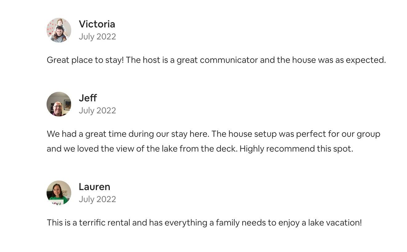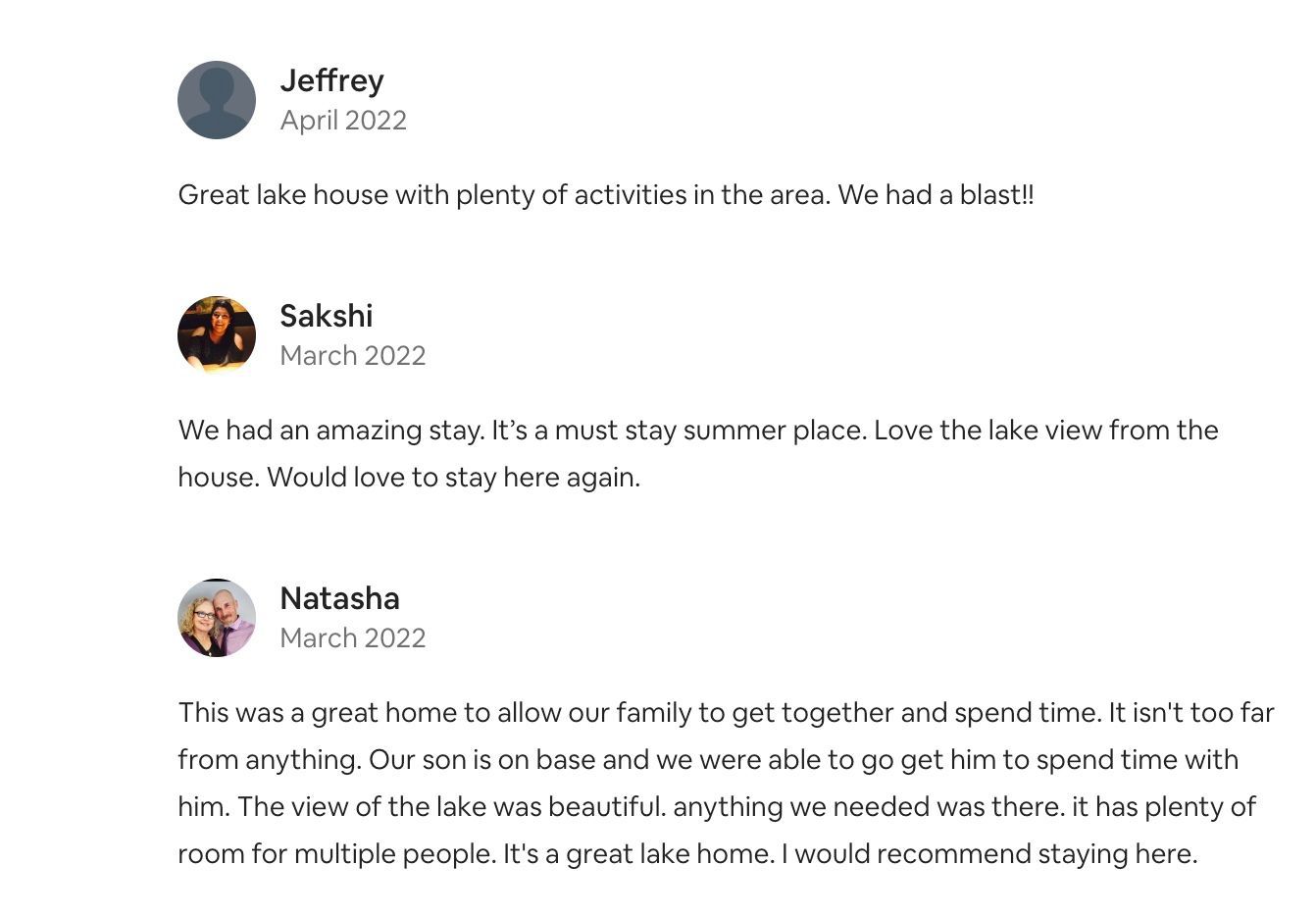 We are a family owned lake front vacation rental and corporate retreat; exclusively available through . Why stay in a hotel when you can enjoy a private residence with all the comforts of home? Whether you are traveling solo or with a large group, we have the perfect lake front home to suit your needs. We offer 3 homes on our spacious property, that are available to rent together or separately . Stay for the weekend or all month, we can accommodate any length of stay - any time of year.